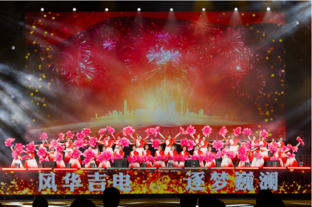 晚会以“风华吉电 逐梦巍澜”为主题,共分为四个篇章,分别是寻梦·回眸甲子、青春·绚丽华章、奋进·砥砺前行、扬帆·相约未来。